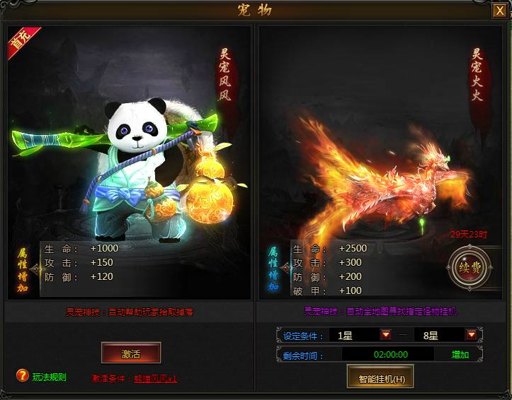 系统说明:灵宠风风自动帮助玩家拾取掉落,灵宠火火带领玩家自动全地图寻怪。集齐两大灵宠,风风火火闯九州。